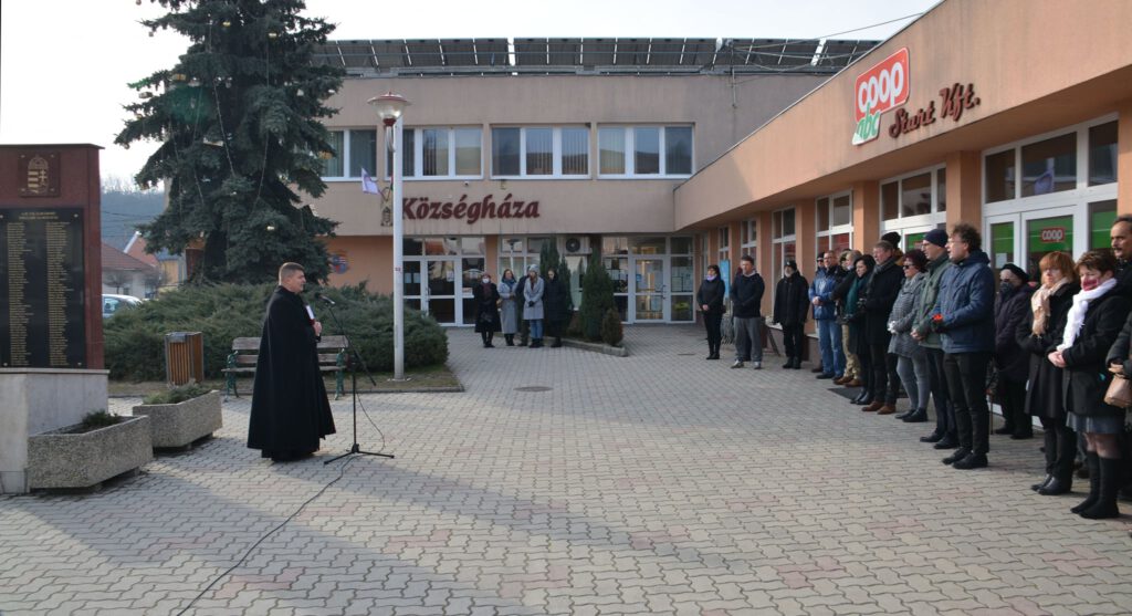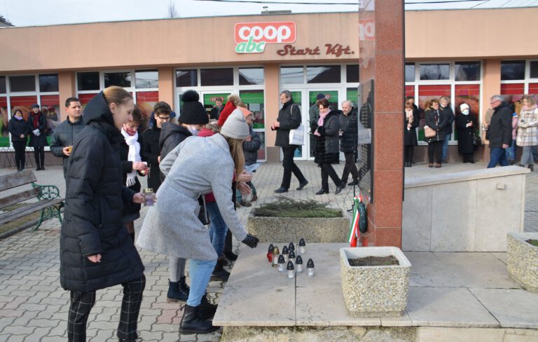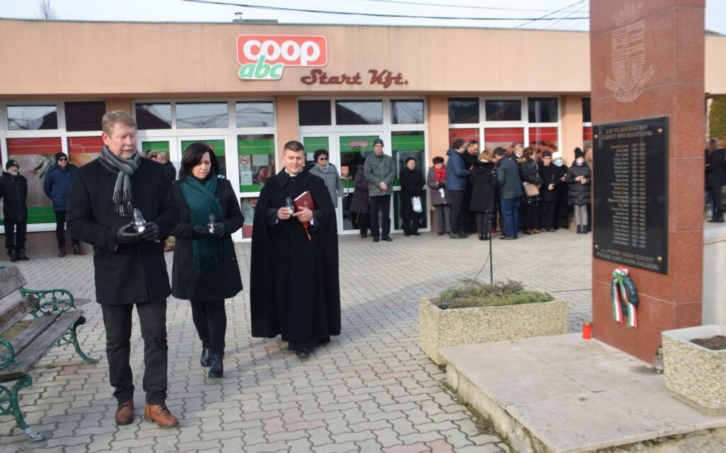 Az emlékezők a Szent István-kórus közreműködésével elénekelték a Boldogasszony Anyánk című éneket, majd Kollár Károly polgármester felszólításának eleget téve a jelenlévők fejet hajtottak és mécseseket gyújtottak az emlékműnél.