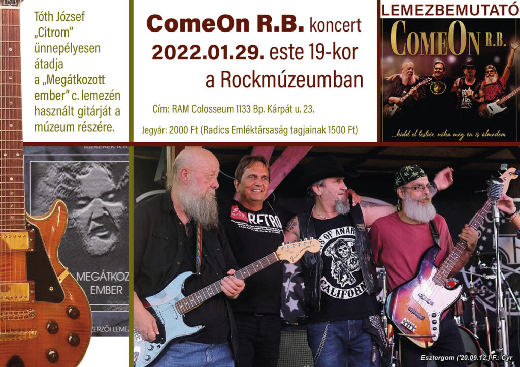 Az esztergomi ComeOn RB zenekar „hidd el testvér, néha még én is álmodom” című frissen megjelent nagylemezének nyilvános lemezbemutató koncertje 2022. január 29-én, szombaton 19 órakor lesz Budapesten a Rockmúzeumban (Budapest, Kárpát u. 23, 1133).
