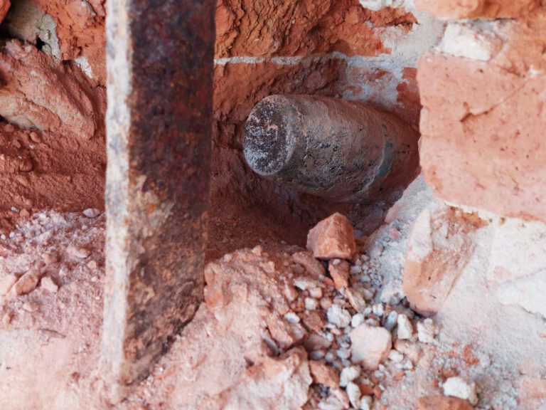 Két, az állványzathoz rögzített ideiglenes lifttel vitték fel az alakulat katonáit 55 méter magasba, majd Debrődi Péter őrnagy, tűzszerész műveleti főnök megkezdte a téglafalba fúródott robbanóeszköz kivésését. Miután sikerült óvatosan eltávolítani a lövedéket, Debrődi őrnagy megállapította, hogy egy 76 milliméteres, második világháborús eredetű, szovjet repeszgránát került elő. A robbanótest gyújtószerkezete becsapódásának pillanatában letört, az eszköz pedig eldeformálódott. Robbanóanyagot tartalmazott a gránát test, de szállítható állapotú volt, így el is vitték azt a katonák a helyszínről a Magyar Honvédség központi gyűjtőhelyére, későbbi megsemmisítésre – írta Gajdos Milán hadnagy, kommunikációs tiszt a tűzszerészek közösségi oldalán.