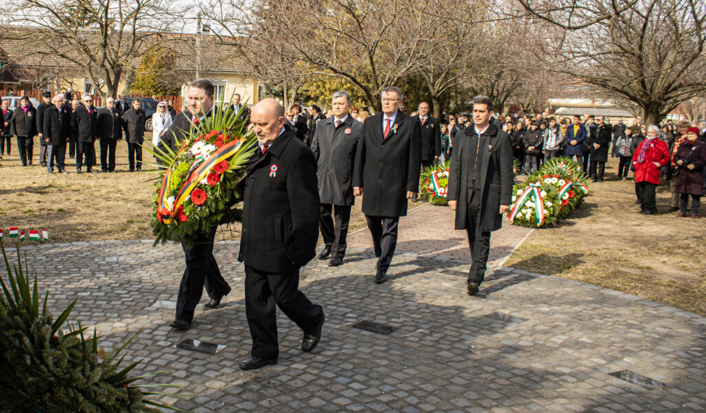 Koszorút helyezett el a Komárom-Esztergom Megyei Önkormányzat nevében Steindl Balázs, a megyei közgyűlés alelnöke, valamint Dorog Város Önkormányzata nevében dr. Tittmann János polgármester, Jászberényi Károly és Dankó Kristóf alpolgármesterek. Továbbá a dorogi német, roma, szlovák nemzetiségek tagjai, Dorog intézményei, Dorogi Szénmedence Sportjáért Közalapítvány, Dorog Város Kommunális Közalapítványa, Dorog Város Barátainak Egyesülete, Dorogi Ipartestület, Dorogi Vállalkozók Egyesülete, Dorogi Nyugdíjas Egyesület, Városi Nyugdíjas Egyesület, Civilek a Fejlődő Városért Egyesület, Élhető Városért Egyesület, Baumit Kft., Richter Gedeon Nyrt. Dorogi Fióktelepe, Veolia Energia Magyarország Zrt., illetve a pártok helyi szervezetei.