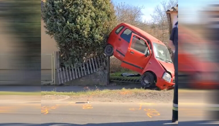 Kerítésnek hajtott egy gépkocsi Neszmélyen, a 10-es út Fő utcai szakaszán, a Petőfi Sándor utca közelében.