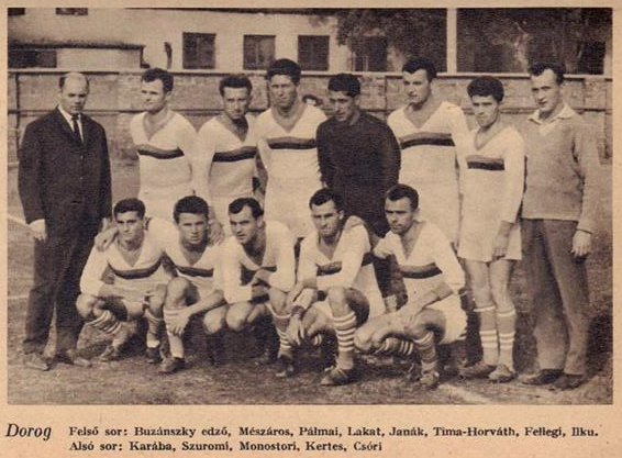 A dorogi csapat 1962-ben, nem sokkal a Húsvéti kupagyőzelmét követően, de itt már kiegészülve a két nagyon tehetséges új igazolással, Karába Jánossal és Szuromi Antallal, akik a belgiumi túrát követően kerültek Dorogra.