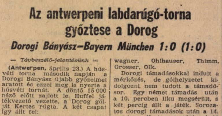 60 éve történt: A Dorog neves nemzetközi kupagyőzelme Belgiumban