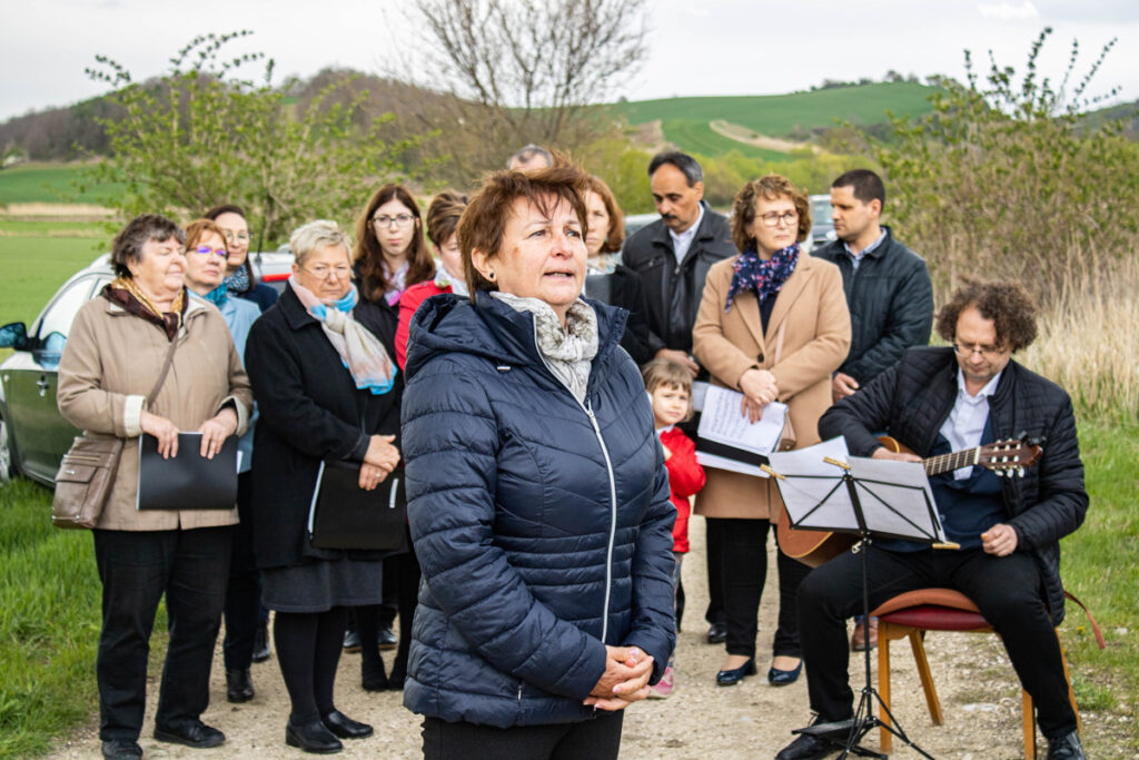 Az ünnepséget a helyi kórus énekkel nyitotta, majd Huberné Kisgyőri Katalin, a Sárisápi Szlovák Önkormányzat elnöke elmondta, hogy a Sárisápi Szlovák Önkormányzat a Bethlen Gábor Alapkezelő Zrt. „Útmenti keresztek 2021. évi támogatása” című, NKER-KP-1-2021/1-000056 azonosító számú pályázatának támogatásával újulhatott meg a falu határában, a Babáli-hídhoz vezető földút mentén álló szoborfülkés képoszlop, ami egy, a mezőgazdasági munkák során történt tragédiának emléket. Az elnök kiemelte, hogy a Malom utcai kereszt is felújításra szorul, ezért továbbra is figyelemmel kísérik majd az ilyen jellegű pályázatokat, hogy azt is fel tudják majd újítani.