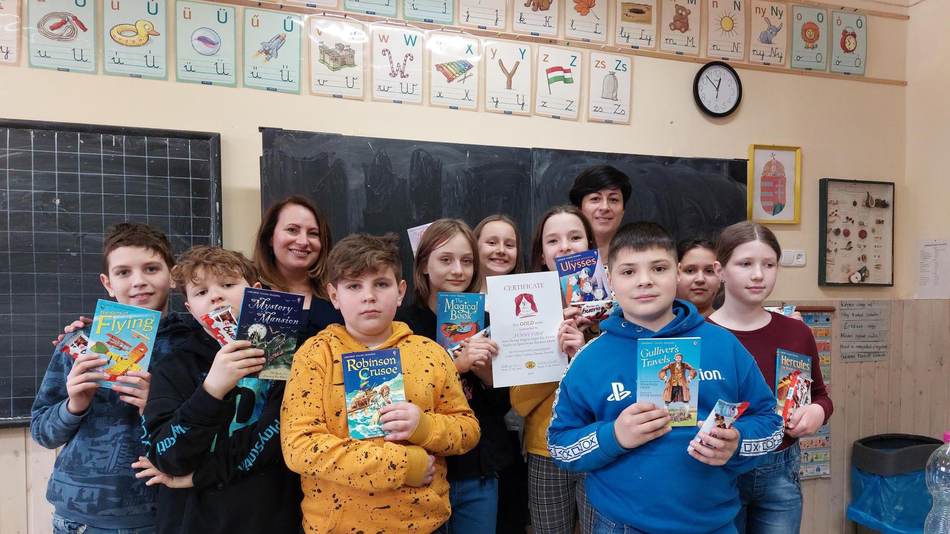 A színdarab színvonalas felvételéhez a helyszínt a Dorogi József Attila Művelődési Ház biztosította a színházteremben. A munkákat márciusra sikerült értékelnie a szakmai zsűrinek. Az alsó tagozatosok versenyében a 4. a osztályos tanulók „Fairyland” csapata a „Crazy Story” című előadásukkal aranyérmes lett, valamint a felső tagozatosok versenyében, az 5-6. osztályosok kategóriájában, az 5. a osztály „Funny Farm” társulata a „Click-clack-moo” című darabbal szintén megszerezte az aranyat!