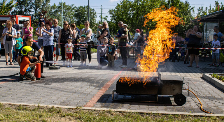 Kiss Zoltán, a Richter létesítményi tűzoltóságának parancsnoka elmondta, hogy a program során bemutatkozott a teljes járműparkjuk a felszereléseikkel együtt. A gyerekek felpróbálhatták a tűzoltóruhákat, illetve a sisakokat. A tűzoltóautókba pedig beülve igazi lánglovagnak képzelhették magukat, mikor elindították a szirénát – tette hozzá, majd megjegyezte, hogy a bátrabbak tálcatűzoltáson is részt vehettek, a legkisebbeknek pedig színezőkkel és különböző játékokkal készültek.