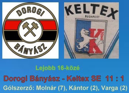 A magabiztos továbbjutást követően a NB II. Déli csoportjának bajnoka, a kelenföldi Vörös Lobogó Keltex SE jött a soron, amely végül az osztályozón nem tudta kiharcolni az NB I-be kerülést. A dorogiak hatalmas játékkedvvel futballoztak és alaposan helybenhagyták ellenfelüket. Molnár József különösen elemében volt, aki több, mint féltucat gólt rámolt be a fővárosiak kapujába. Ha leszámolnánk a kitűnő csatár góljait, még akkor is vaskos győzelem lett volna.