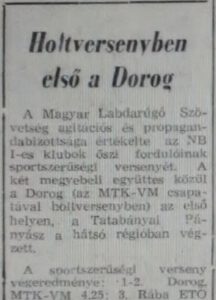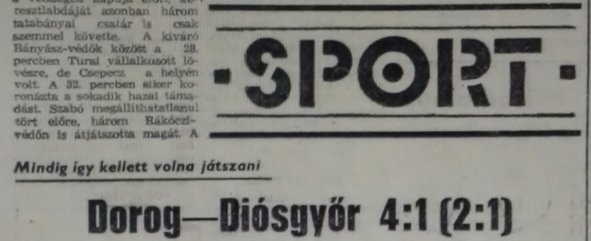 A DVTK elleni meccsről készült cikk főcíme a korabeli sajtóban