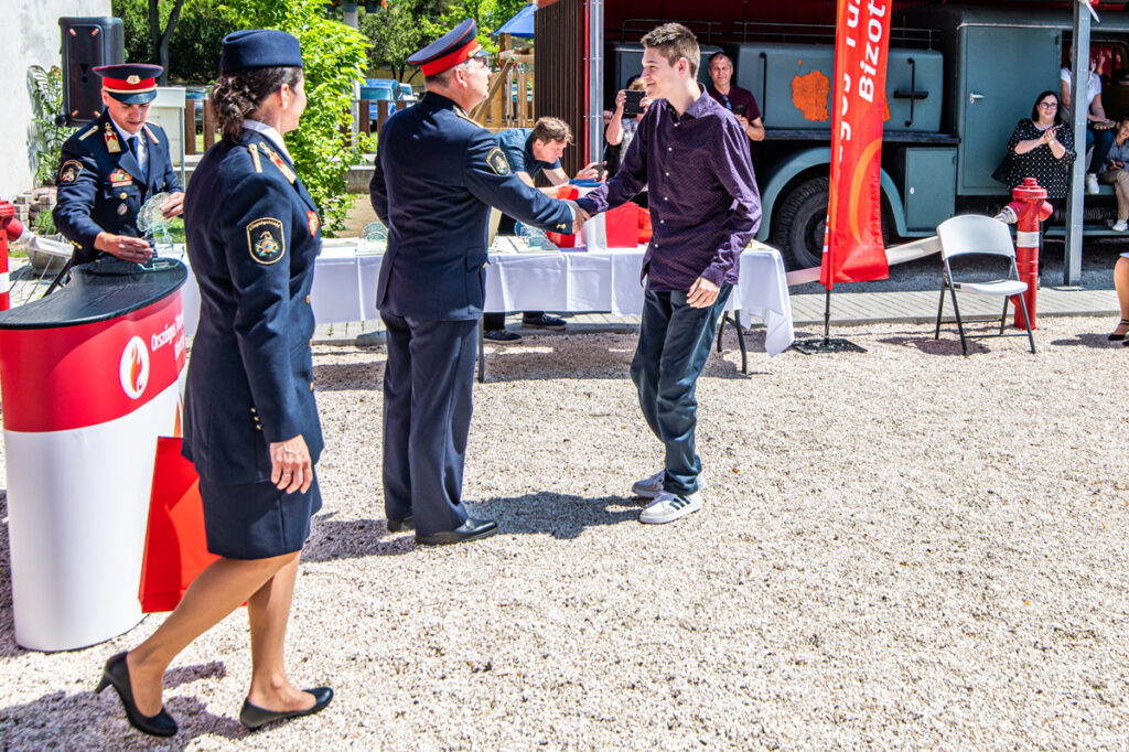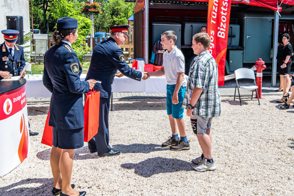 A Tűzoltó Skanzenben tartotta meg az alkotópályázat díjátadó ünnepségét június 10-én az Országos Tűzmegelőzési Bizottság. Idén végre igazi találkozásnak örülhettek a gyerekek, ezúttal nemcsak szép szavakat, hanem valódi élményeket is kaptak alkotó munkájukért cserébe. Az alkotói pályázat eredményhirdetése ugyanis tartalmas nyár eleji programmá változott.