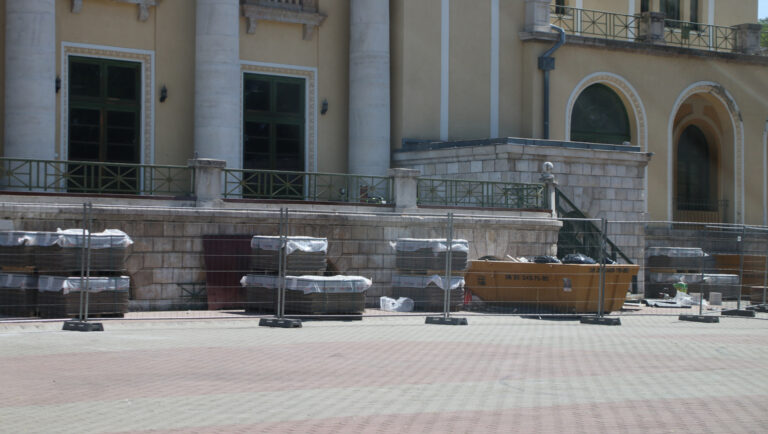 A meglévő rétegrendeket egészen a teherhordó szerkezetig elbontották. A beázások megszüntetése és a megfelelő műszaki tartalom érdekében új hő- és vízszigetelést készítenek a szakemberek. A művelődési ház bálteremből nyíló nagyteraszán már az új rétegrendek kialakítása van folyamatban, míg a négy kisebb teraszon a bontási munkálatok zajlanak. Összesen 336 m2 új – kültéri szárazon rakott – kiselemes térkőburkolatot raknak le nyár végéig, ezzel szüntetve meg a teraszok alatti helyiségek beázását, állagromlását.