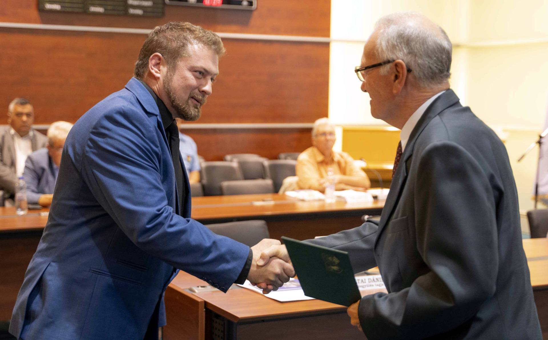 A Komárom-Esztergom megyei közgyűlés június 30-ai, csütörtöki ülésén új képviselőként tett esküt Zoltai Dániel, aki a Fidesz-KDNP frakció tagjaként a megyei választási bizottság elnökétől, Solymos Andrástól vette át megbízólevelét.