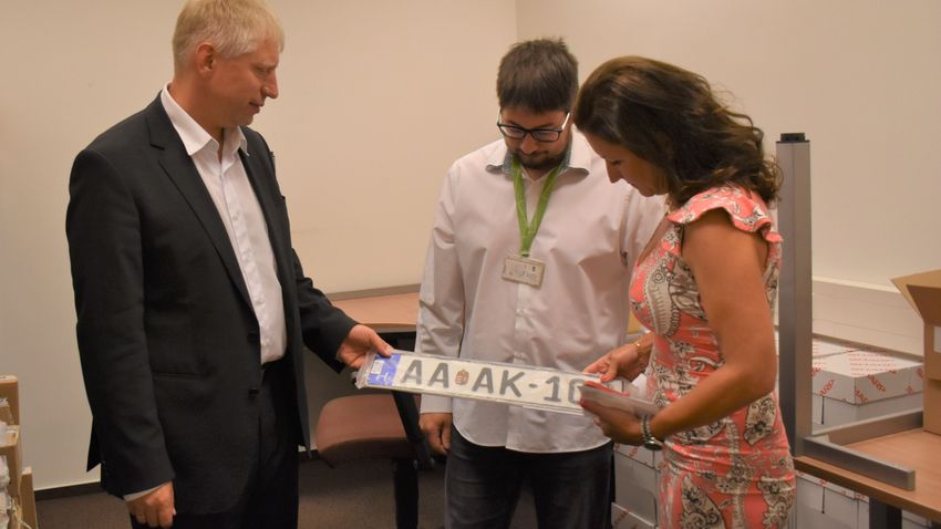 A megyeszékhelyen az első új formátumú rendszámtáblát Hajasné Dr. Hertelendi Valéria, a Tatabányai Járási Hivatal vezetője adta át július 1-jén, pénteken.