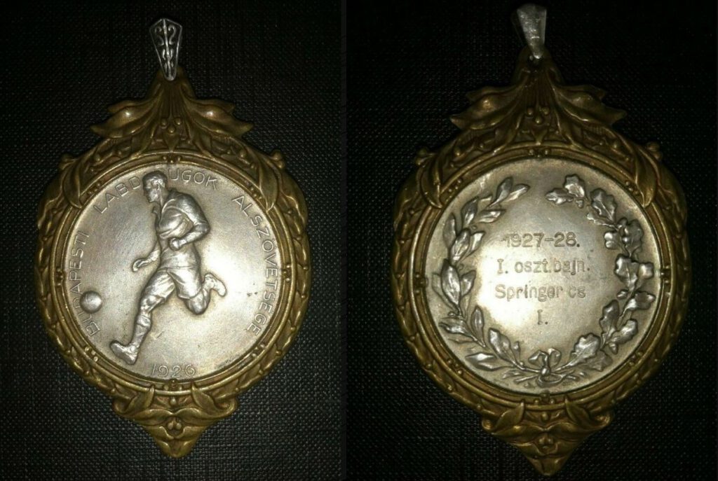 Ilyen érmet nyertek a dorogiak, bár sajnos a Budai alszövetség hasonló érme nem került elő. Így a szemléletesség kedvéért a párhuzamos csoport, a Budapesti Labdarúgó Alszövetség Springer csoportjának bajnoki címért járó érmét tesszük közzé.
