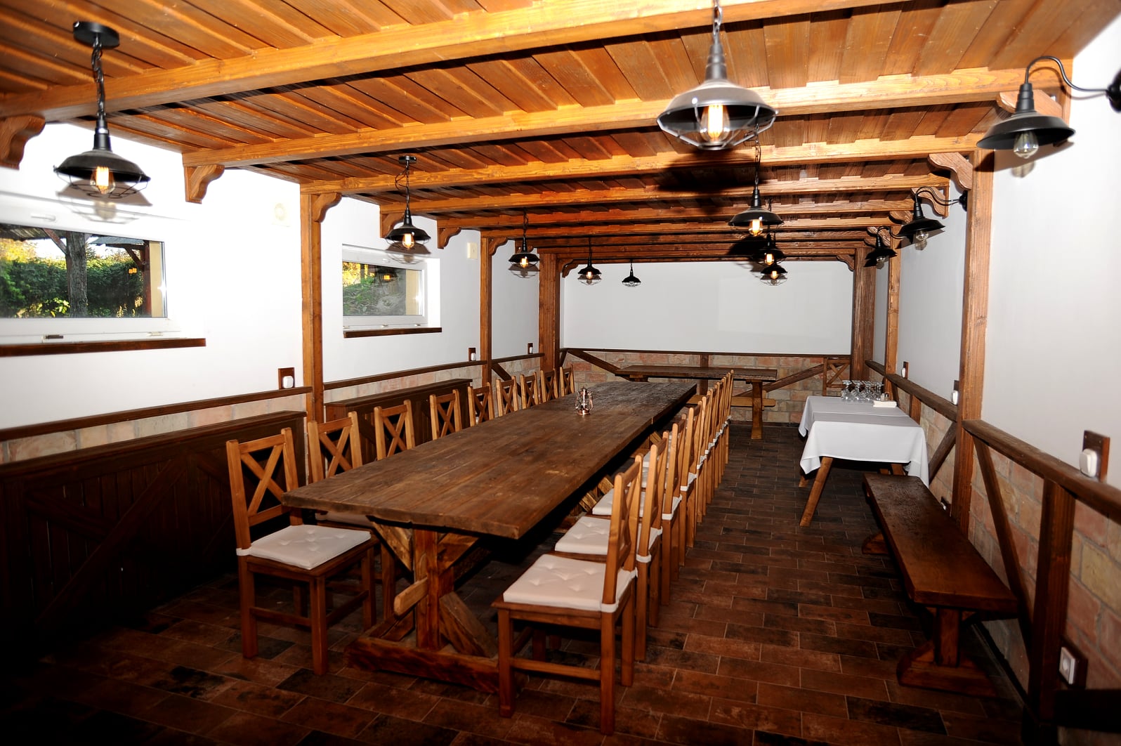 A vendéglő stílusával és infrastruktúrájával egyaránt idézi meg a tradícionális értelembe vett egykori fogadók hangulatát, amely harmónikusan ötvöződik korunk igényeivel és elvárásaival. Egyszerre elegáns és barátságos, árai pedig megfizethetők. Egyéneknek, kis- és nagy családoknak, vagy tömeges rendezvények számára is maximálisan ideális. A több rendezvény-terem és helyiségnek köszönhetően, párhuzamosan is több, akár komolyabb létszámú összejövetel is folyhat. Közkedvelt lakodalmak, osztály-, vagy brigádtalálkozók helyszíneként. Konflis lehetőséget is biztosított, amellyel Dorogon lehetett rövid sétakocsikázást is megejteni.