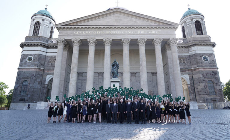 „Itt, a magyar katolicizmus központjában köszönjük most meg, hogy a Jóisten a tudásvágy ösvényén a diplomáig vezérelte végzőseinket. Nem volt könnyű út, hiszen a járvány nagyon nagy megpróbáltatás elé állított diákot és tanárt egyaránt. De itt kell megköszönni, barátaink és felebarátaink támogatását, és itt kell hálát adnunk szüleink, szeretteink odaadó támogatásáért és szeretetéért is.”