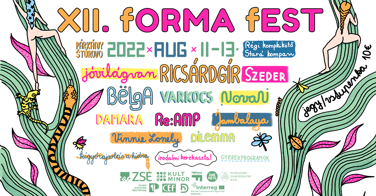 Augusztus 13-án, szombaton hetedszer rajzolnak krétakígyót a Mária Valéria hídra. A másfél órás program egyaránt várja a kisgyermekes családokat és az alkotni vágyó fORMÁKAT. Tavaly már nyolcvanan tömték meg rajzaikkal és kedvenc irodalmi vagy zenei idézeteikkel a kígyó bendőjét. A híd esztergomi hídfőjétől Párkányba érve, a fesztivál helyszínén a Diákhálózat gyermekfoglalkozásai várják a kicsiket és szüleiket, sőt házi kencék készítésébe is foghatunk Mácsadi Anni vezetésével. A délutánt előadások színesítik: Nők a művészetben és a médiában címmel Durica Katarinával, Galán Angélával, Kiss Kósa Annamáriával beszélget a főszervező, Bokor Réka, majd Orosz Örs nemrég megjelent Szoborsorsaink c. könyve hoz minden érdeklődőt fORMÁBA. A zenei menü a szombati napon, a budapesti újgenerációs underground üdvöskéje, a Damara, onnan New Orleans-i hangulatba csöppenhetünk a Jambalaya együttes fantasztikus előadása által, majd ismét felvidéki slammerjeink lökik nekünk a szöveget! Érdemes meghallgatni, mit üzennek nekünk! A fesztivál „cseresnyicskája” a Ricsárdgír, akik táncra bírják majd a vén Dunát is. Az éjszaka tűzvarázslat és DJ Dilemma elképesztő zenei válogatása zárja a Nyár Legboldogabb Napjait!
