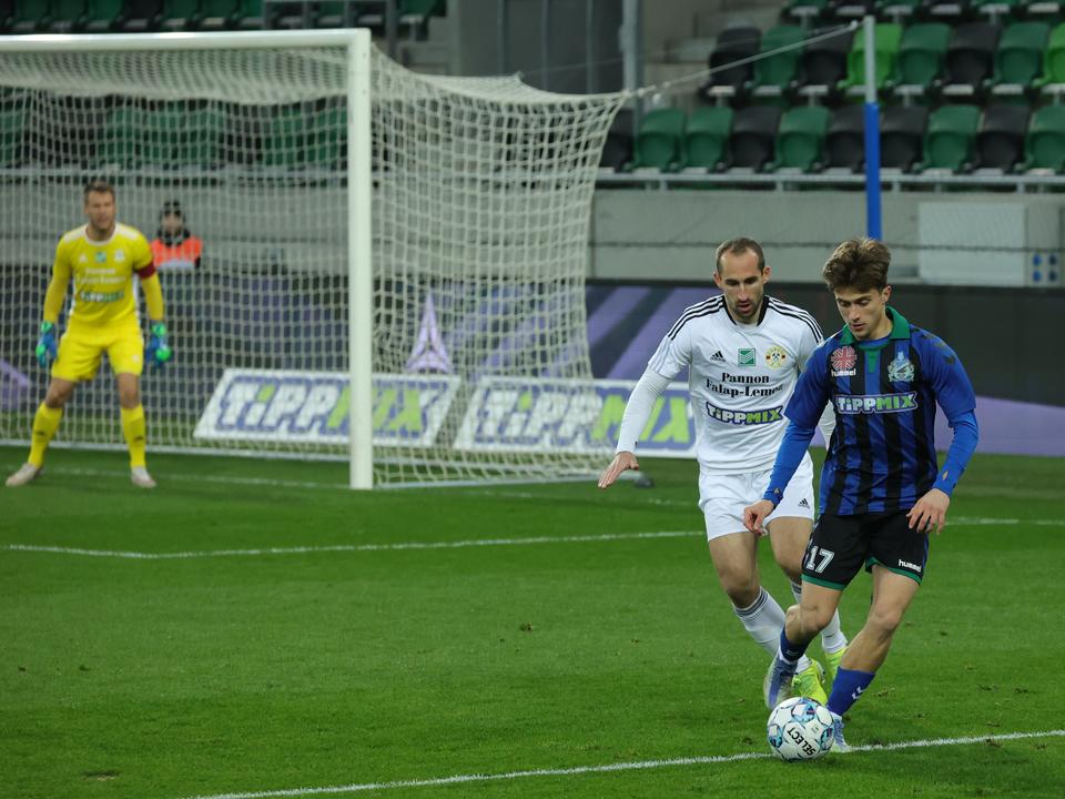 A legutóbbi Szeged-Csanád – Dorog mérkőzésen, idén február 13-án Papp Máté igyekszik kiszorítani a a 16-oson kívülre a szegedi támadót. A háttérben Mursits Roland kapus látszik (forrás: Szeged Ma.hu).