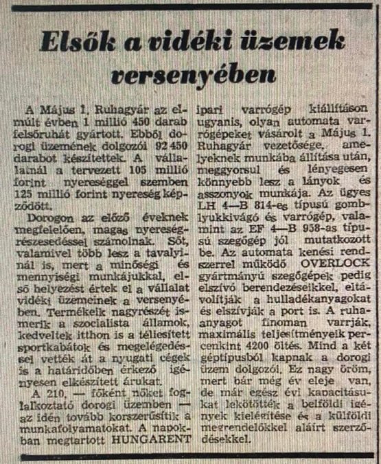 Ön itt van:Kezdőlap » 55 éve létesült az Elegant Május 1. Ruhagyár Dorogon