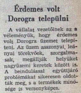 Elismerő sorok a ruhagyár dolgozóiról