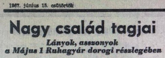A ruhagyár megnyitásának beharangozó főcíme 1967 tavaszán