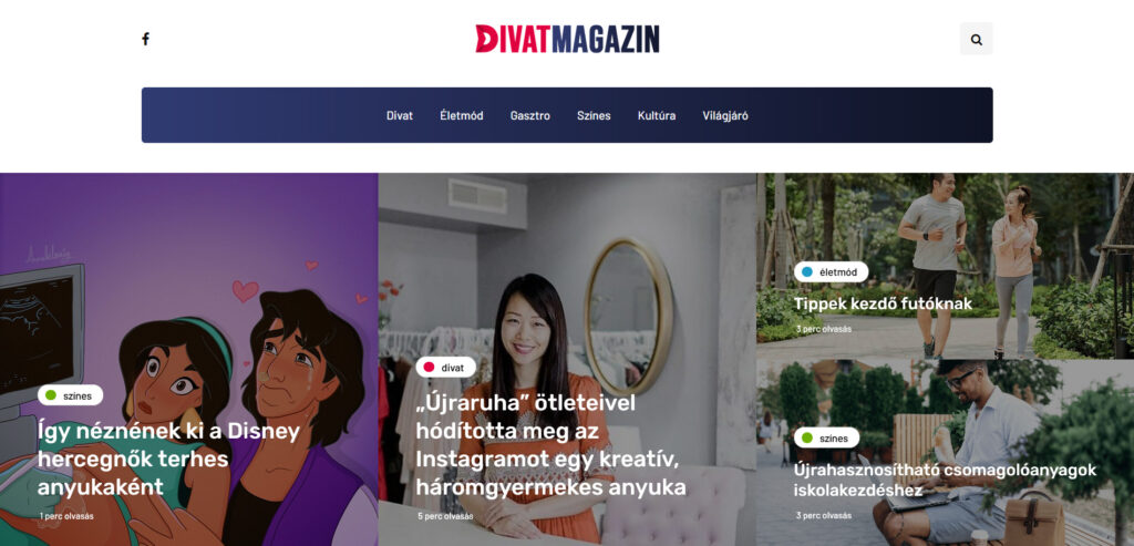 A portálon alapvetően hat kategóriában találunk cikkeket: divat, életmód, gasztro, színes, kultúra és világjáró. A divat kategóriában olyan cikkeket is találunk, ami a ruha újrahasznosítását mutatja be egy háromgyermekes anyukán keresztül, aki az „újraruha” ötleteivel hódította meg az Instagramot. De olyan témákat is boncolgatnak az őszi szezon kapcsán, hogy a nők hány zsebes átmeneti kabátot vásároljanak. Az életmód kategória is egész izgalmasnak ígérkezik, hiszen az etikus divat mellett tippeket is adnak a kezdő futóknak.
