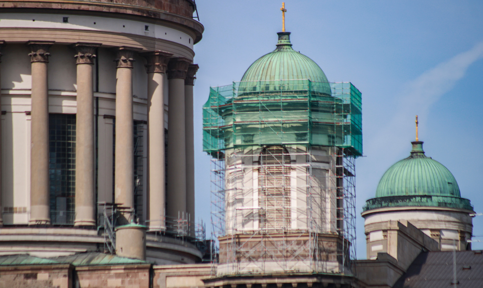 A szeptember 19-ei héten leemelik az Esztergomi Bazilika Déli-tornyának a kupoláját, valamint kiemelik a harangot is a toronyból.