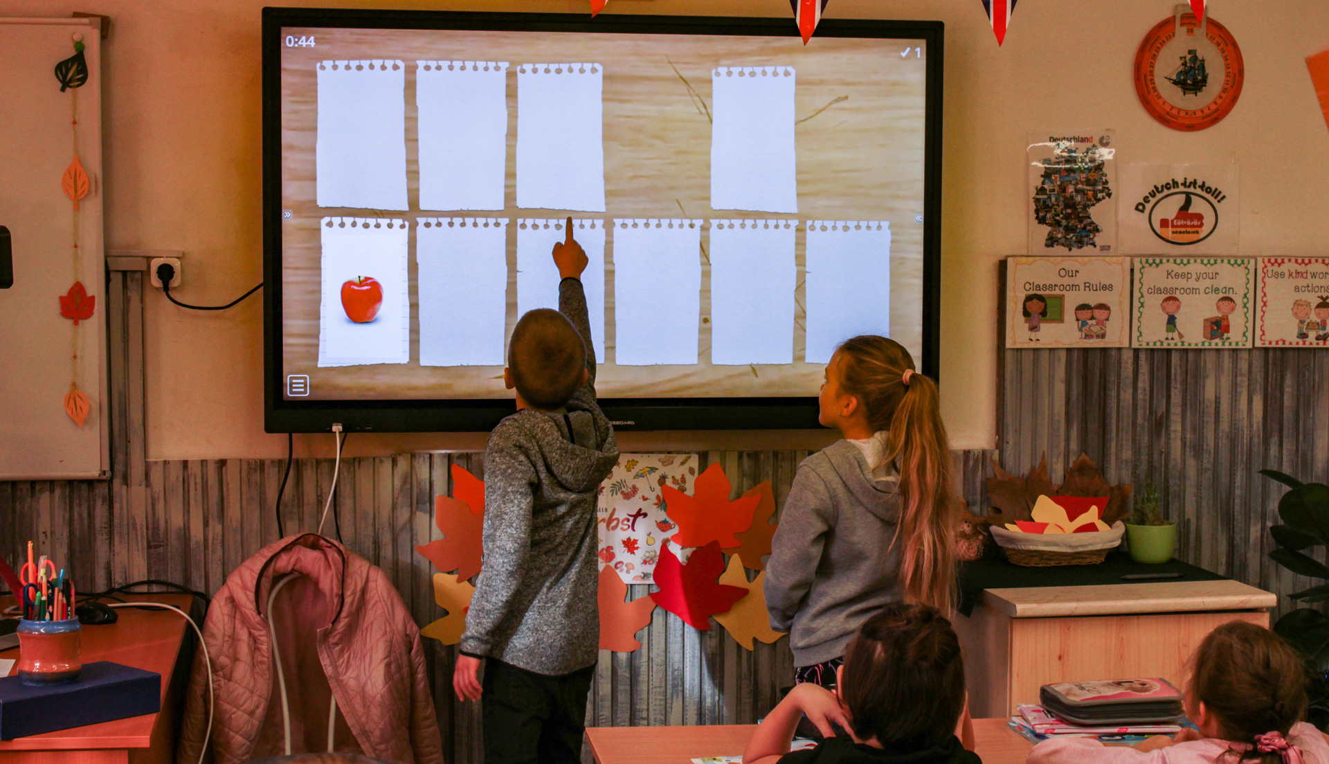 Az átadást követően a második osztályos diákok a digitális tábla segítségével kezdték meg a tanórát. Kiss Rózsa tanítónő koordinálásával a gyerekek a gyümölcsökkel, illetve a háziállatokkal ismerkedhettek angol nyelven. Különböző ügyességi- illetve memóriajátékokon, valamint összekötős feladatokon keresztül gyakorolták az idegen nyelvet.
