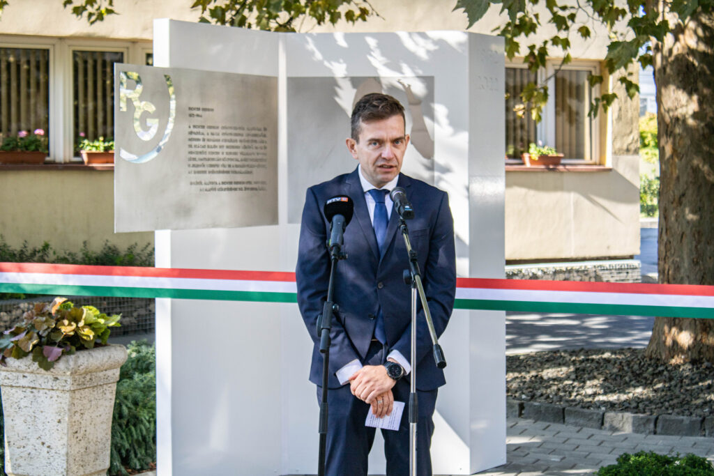 Végül a Halász György iparművész tervei alapján készült emlékmű előtt átvágták a nemzeti színű szalagot.