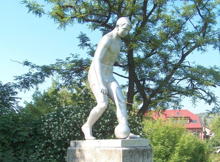 A Népstadionban annak idején egy komplett szoborparkot hoztak létre a főépület mögötti területen, ahol a sportolók tréningeztek és melegíthettek is. Ez azonban ugyan az intézmény területén belül, de magán a stadionon kívül létesült. A park a Puskás Ferenc nevét felvevő aréna újjáépítését követően is, eredeti helyen megmaradt. Az MTK Hungária körúti stadionjában a klubház falát díszítette Brüll Alfréd domborműve, majd később az egyesület két legnagyobb legendájának, Orth György és Hidegkuti Nándor mellszobra is elkészült. Előbbi a Hungária krt-i kapu felöli kanyarban volt felállítva. Az Új Hidegkuti Nándor stadion elkészülését követően, az alkotások a stadion belső terén kívül kaptak helyet, az azóta szintén elkészült Sándor Károly egész alakos szobrával. Vidéken csak Hódmezővásárhelyen és Komlón állítottak szobrot. Az alföldi város stadionjában a kezeit az égbe emelő alak lett megformálva 1965-ben, amely az Atléta nevet viseli, míg Komlón valóságos kompozíció született. A pálya mind a négy sarkában egy-egy sportolót megformáló szobor – egy labdarúgó, egy gerelyhajító, egy kalapácsvető és egy teniszezőnő – látható. Közülük az utóbbi három alkotás 1956-ban készült és idővel megcsonkult, megsérült, míg az egyetlen, még épségben fennmaradt labdarúgó-szobor 1955-ben született.