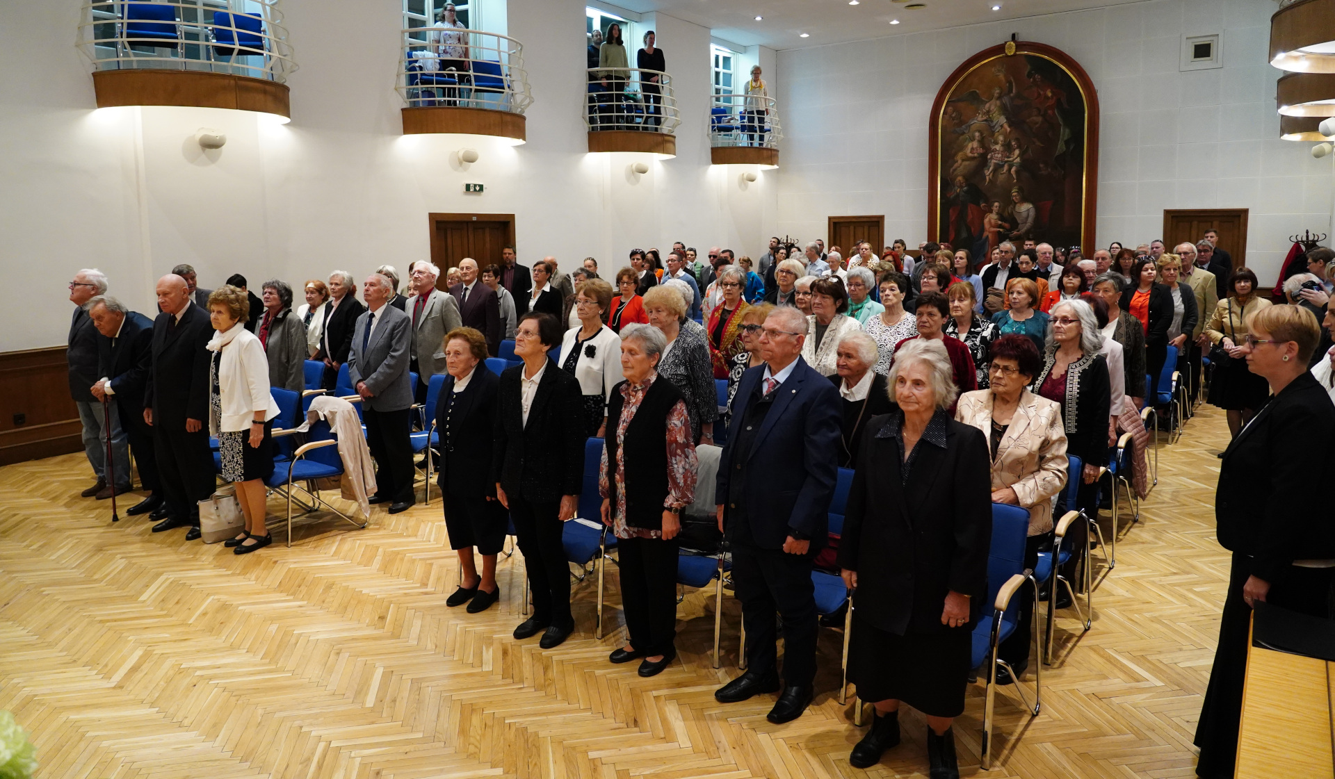 Október 8-án, szombaton az esztergomi Pázmány Péter Katolikus Egyetem Bölcsészet- és Társadalomtudományi Karán díszdiplomák átadásával köszöntötték azokat a pedagógusokat, akik ötven, hatvan, hatvanöt, illetve hetven évvel ezelőtt szerezték meg a felsőfokú végzettséget igazoló oklevelet – írja a btk.ppke.hu