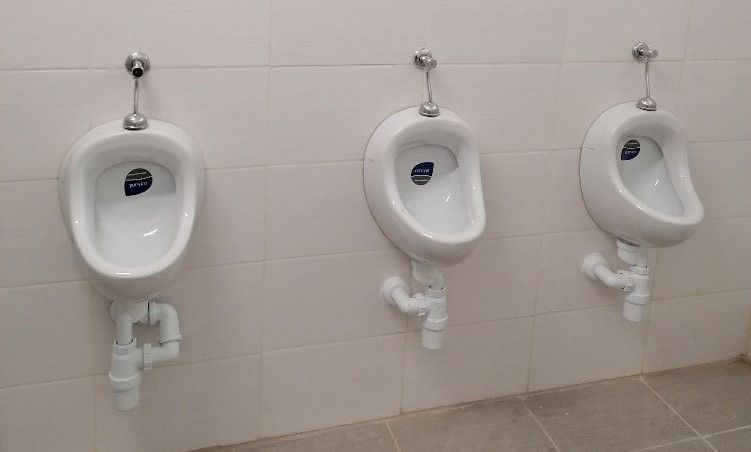A bontást követően új víz-, szennyvíz és elektromos hálózatot építettünk ki. Az új belső hálózatok kialakítását követően mindhárom helyiség új padló- és falburkolatot kapott, valamint beépítésre került 5 db új mosdó és csaptelep, valamint 7 db wc csésze, wc öblítő tartály és 2 db piszoár. A férfi mosdóban 2 db zárható wc kabin, a személyzeti mosdóban 1 db zárható wc kabin, a női mosdóban pedig 4 db zárható wc kabin, valamint 1 db zárható takarítószer tároló lett kialakítva.
