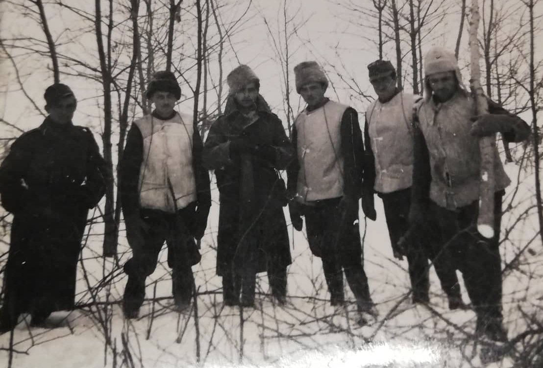 Magyar katonák az orosz télben. Középen sötét kabátban Pfluger Dezső (forrás: Pfluger család albuma).