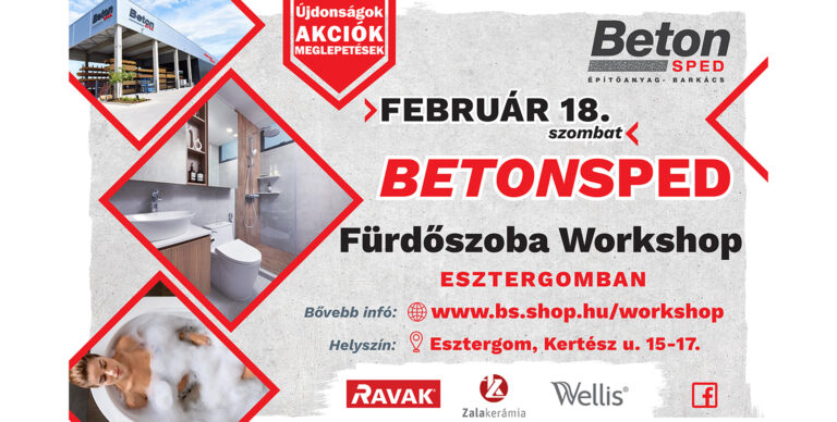 Ha 2023-ban fürdőszoba felújítást tervez, akkor jöjjön el BetonSped Fürdőszoba Workshop-ra február 18-án, szombaton és ismerje meg Ravak, Zalakerámia és Wellis újdonságait a szakértőktől. Márkabemutatók, speciális ajánlatok és újdonságok csak 1 napig!