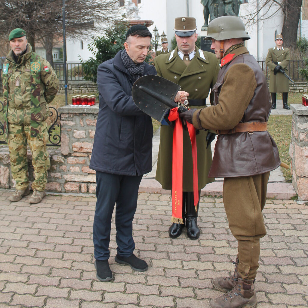 Totha Péter Joel, vezető tábori főrabbi a második világháború munkaszolgálatosainak emléke előtt tisztelegve felkötötte a szalagot az emléktáblával ellátott katonai utász lapátra. Megemlékezése végén kádist – a gyászoló zsidók ősi, héber nyelvű imája – mondott az elhunytak lelki üdvéért.