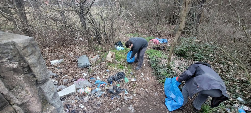 Mintegy két köbméter hulladékot szedett össze civilek bevonásával a Szemétirtók csoportja a dorogi Schmidt-villánál, március 5-én, vasárnap.