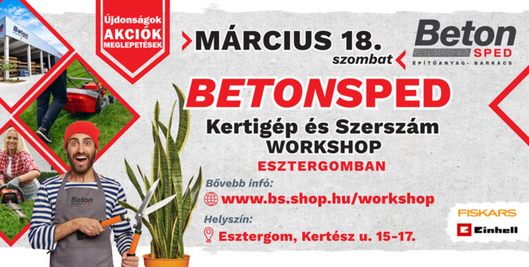 Ha 2023-ban Önnél is fókuszban lesz a kert, akkor jöjjön el BetonSped Kertigép és Szerszám Workshop-ra március 18-án, szombaton és ismerje meg Einhell, és a Fiskars újdonságait a szakértőktől.