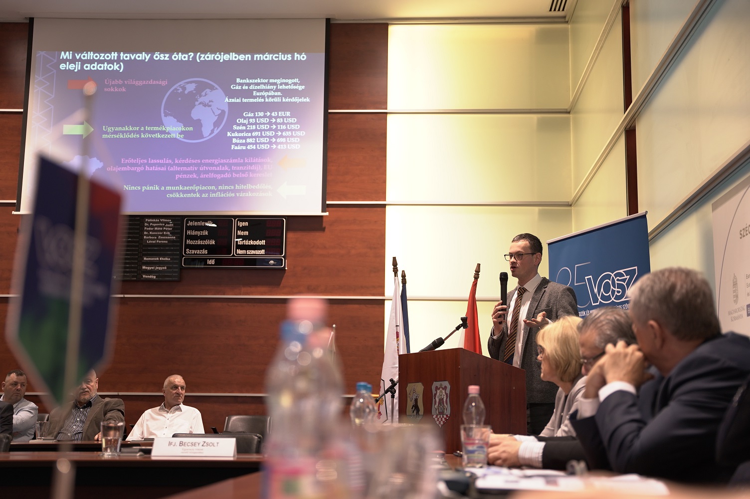 A VOSZ erőssége, hogy területi és országos szinten, sőt, a Kárpát-Medence szintjén egyaránt működik és tevékenykedik a vállalkozói közössége. Különösen fontos, hogy ágazati tagozatai és szekciói is eredményes munkát végeznek. – mondta el a rendezvényen Perlusz László, a szervezet főtitkára. Hozzátette: ennek keretében a vállalkozók a saját szakmájukhoz, a saját szűkebb tevekénységükhöz, vállalkozói életpályájuk minden szakaszához kapcsolódóan is segítséget, információt kaphatnak a VOSZ-tól. A főtitkár beszélt az aktuális helyzetről és a gazdasági folyamatokról is. Külön kiemelte a VOSZ és az Egyensúly Intézet közös szakmai munkájaként elkészült anyagot, amely bizonyítja, hogy nem a vállalkozók „féktelen profitéhsége” okozza az inflációt, hiszen a legtöbb cég a túlélésért küzd Magyarországon. Kitért arra is, hogy a vállalkozások digitalizációját a vállalkozások méretének és tevékenységének megfelelően testre szabható komplex online vezérlőpult és szoftver piactér kifejlesztésével és üzemeltetésével támogatja, VOSZPORT név alatt várhatóan májusi piacra lépéssel. Ez a vadonatúj fejlesztés, hogy induló vállalkozástól a nagyobb vállalati méretig integrált online platformban menedzselhetővé teszi a vállalkozás teljes irányítását és kapcsolatrendszerét.