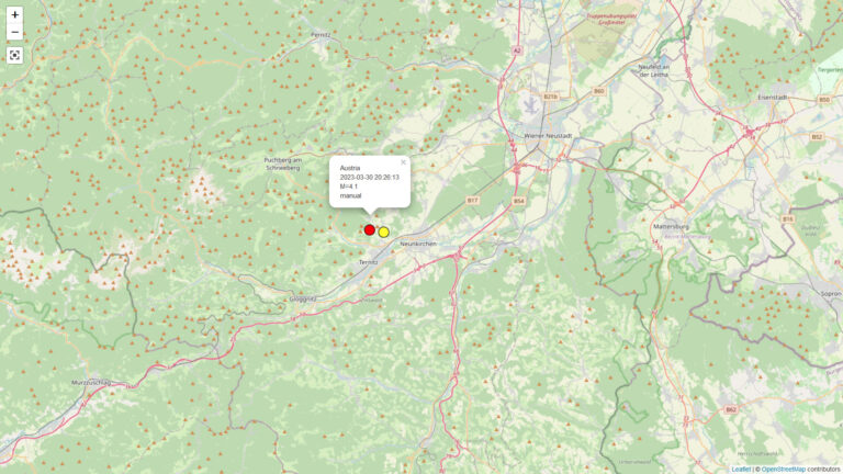 A Földfizikai és Űrtudományi Kutatóintézet Kövesligethy Radó Szeizmológiai Obszervatóriumának tájékoztatása szerint 2023. március 30-án, helyi idő szerint 22 óra 26 perckor földrengés volt Ausztriában, Bécsújhely térségében, az országhatártól megközelítőleg huszonöt kilométerre. A földmozgás erőssége 4,1-es volt a Richter-féle skálán. A rengést Sopron térségében a lakosság is érzékelte, ugyanakkor károkról egyelőre nem érkezett bejelentés a katasztrófavédelemhez.