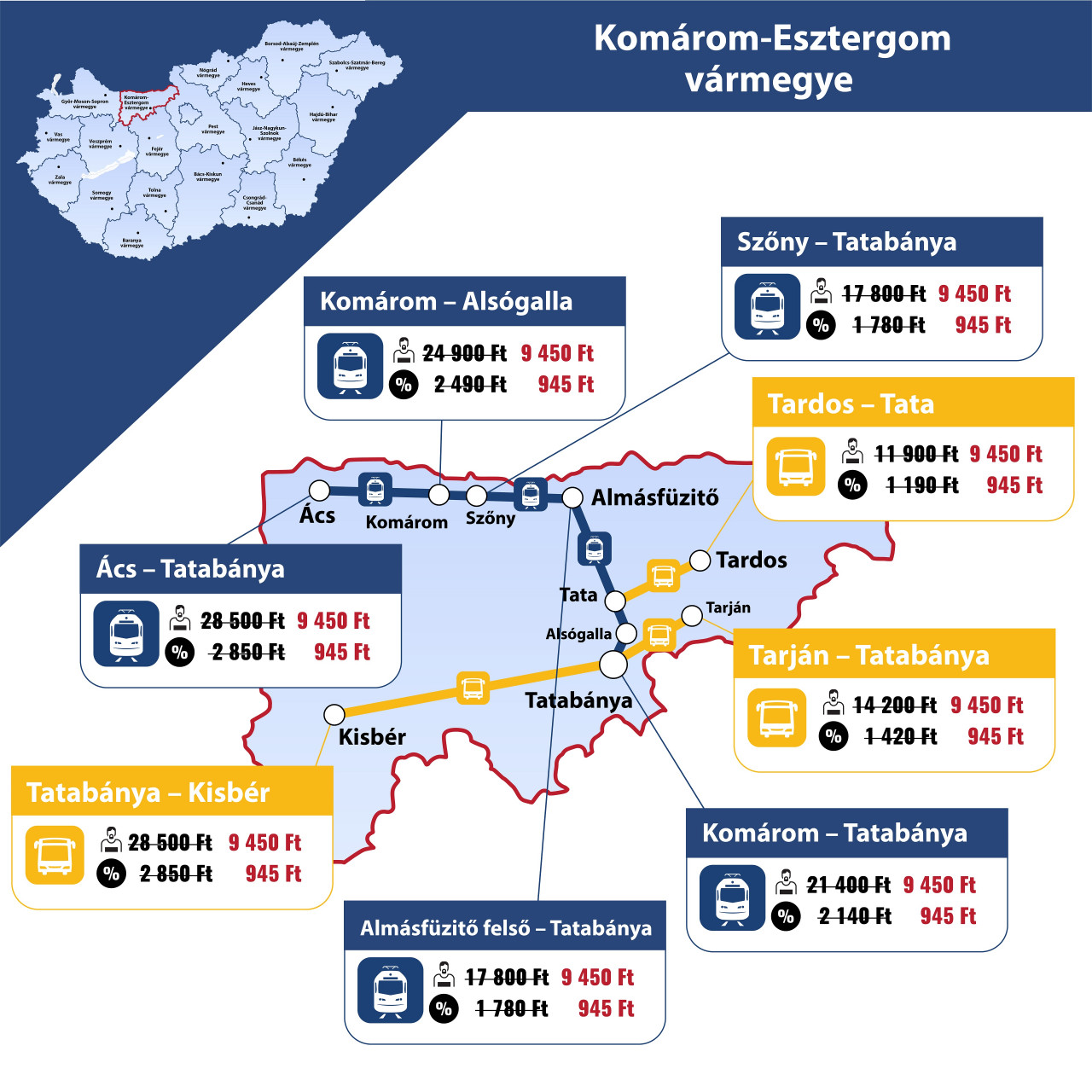 A portál egyik hangsúlyos eleme, hogy több jellemző, gyakran igénybe vett útvonal jelenlegi bérletárait hasonlítja össze az új vármegyebérlet 9.450 forintos árával, így szemléltetve, hogy az új típusú bérlettel mennyit takaríthatnak meg az utasok havonta. Mindemellett a rendszeresen hosszabb távú, több megyét érintő utazásokat tervezők arra is választ kaphatnak, hogy a 18.900 forintba kerülő országbérlet mennyi spórolást jelenthet a korábbi díjtermékekkel szemben. A viszonylati összehasonlításokat nemcsak a teljesárú bérletekre kiszámítva mutatja meg a honlap, hanem a nappali vagy esti tagozatos tanulók, illetve a jogszabály szerinti jogosultak 90 százalékos kedvezménnyel váltható bérletek áraival is összeméri a lehetőségeket. A 90 százalékos kedvezményre jogosultak a vármegyebérletet 945, az országbérletet pedig 1.890 forintért vásárolhatják meg. Az oldalon az eddig felmerült leggyakoribb kérdéseket (GYIK) és azokra adott válaszokat is megtalálhatják az érdeklődők.