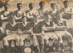 Az ellenünk pályára lépő Skót bányász válogatott csapatképe. Felső sor balról: Gerard Carty, Joe Nelson, Alex McAnespie, Bert Allan, Tom McDonach, Tom Connor. Első sor balról: Andy Williamson, Derry Wallace, Alan Marnoch, Morris Aitken, Fred Ayres. A hazai bányász válogatott vezetője Peter Craigie volt.