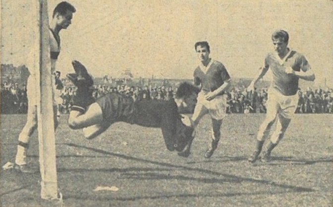 A skót lapokban megjelent tudósításhoz mellékelt fotó a kapunk előtti izgalmas akciót örökít meg (forrás: Coal News eredeti számából a Scottish Junior FA archívumából)