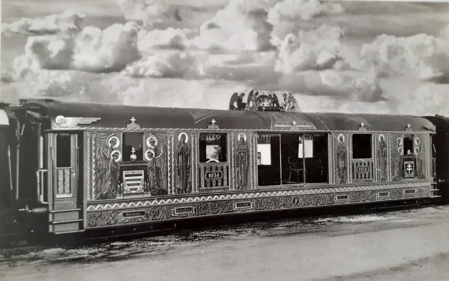 Borítókép: Az Aranyvonat ereklyét szállító díszkocsija korabeli képeslapon (forrás: Vatera.hu)