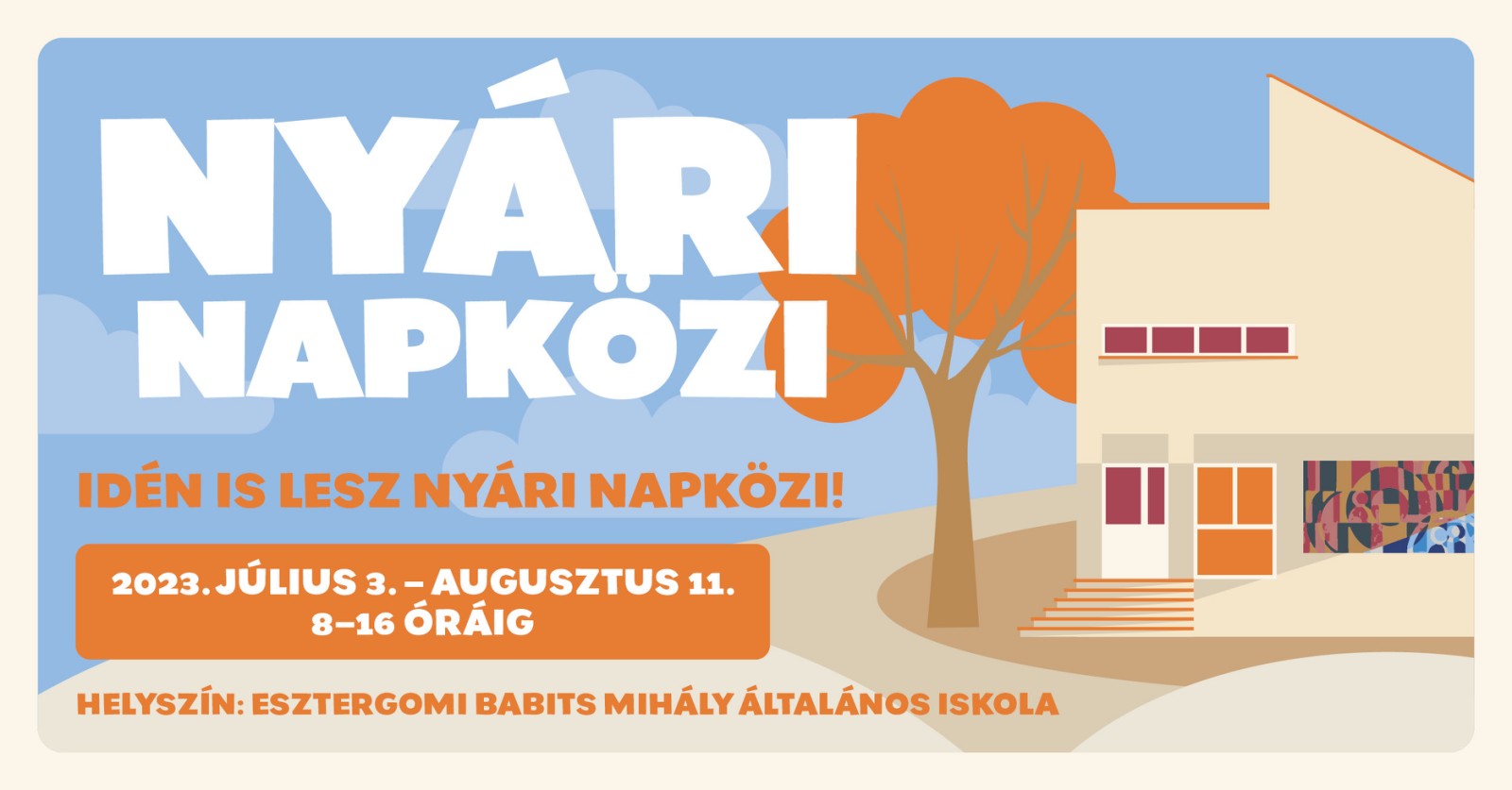 Esztergom Megyei Jogú Város Önkormányzata nyári napközis tábort szervez 6 turnusban, 2023. július 3-tól augusztus 11-ig, naponta 60 főig, melynek a helyszíne az Esztergomi Babits Mihály Általános Iskola lesz.