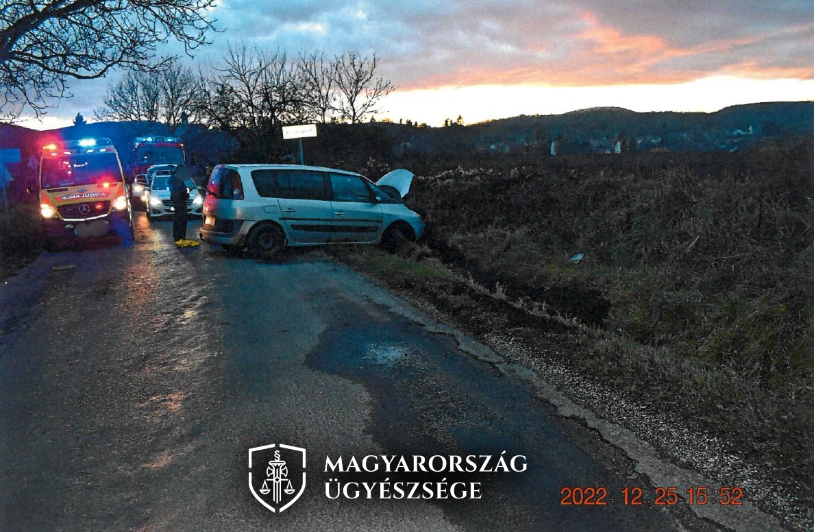 A vádirat szerint a férfi 2022. december 25-én Pilismarót külterületén a Bajcsy-Zsilinszky úton, a Duna irányából Pilismarót irányába közlekedve ittas állapotban vezette a tulajdonát képező személygépkocsit. A férfi a személygépkocsival a lakott területet jelző tábla előtti balra ívelő kanyarban az ittassága folytán letért az úttestről és a menetirány szerinti jobb oldalon a vízelvezető árkon keresztülhajtva a gépkocsi elejével a füves partoldalnak ütközött, majd a gépkocsi a bal oldalára borulva nyerte el baleseti véghelyzetét. A sofőr közepes fokban volt ittas állapotban.