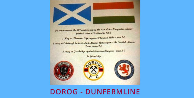 Mint arról egy korábban megjelent emlékcikkben már olvasható volt, 1963-ban a Dorogi Bányász labdarúgóira épült Magyar bányász válogatott vendégszerepelt Skóciában a Bányász Gálán. A 60 éves évforduló alkalmából az egykori vendéglátók és a magyar fél közös ünnepséget rendezett, amelyre június 14-én került sor Dorog és a skóciai Dunfermline városai közötti online konferenciatalálkozó formájában. Mindkét oldalon rangos képviselet és az egykori játékosok részvételével egy jó hangulatú, rendhagyó módon megvalósult programmal a két fél sporttörténelemet írt.
