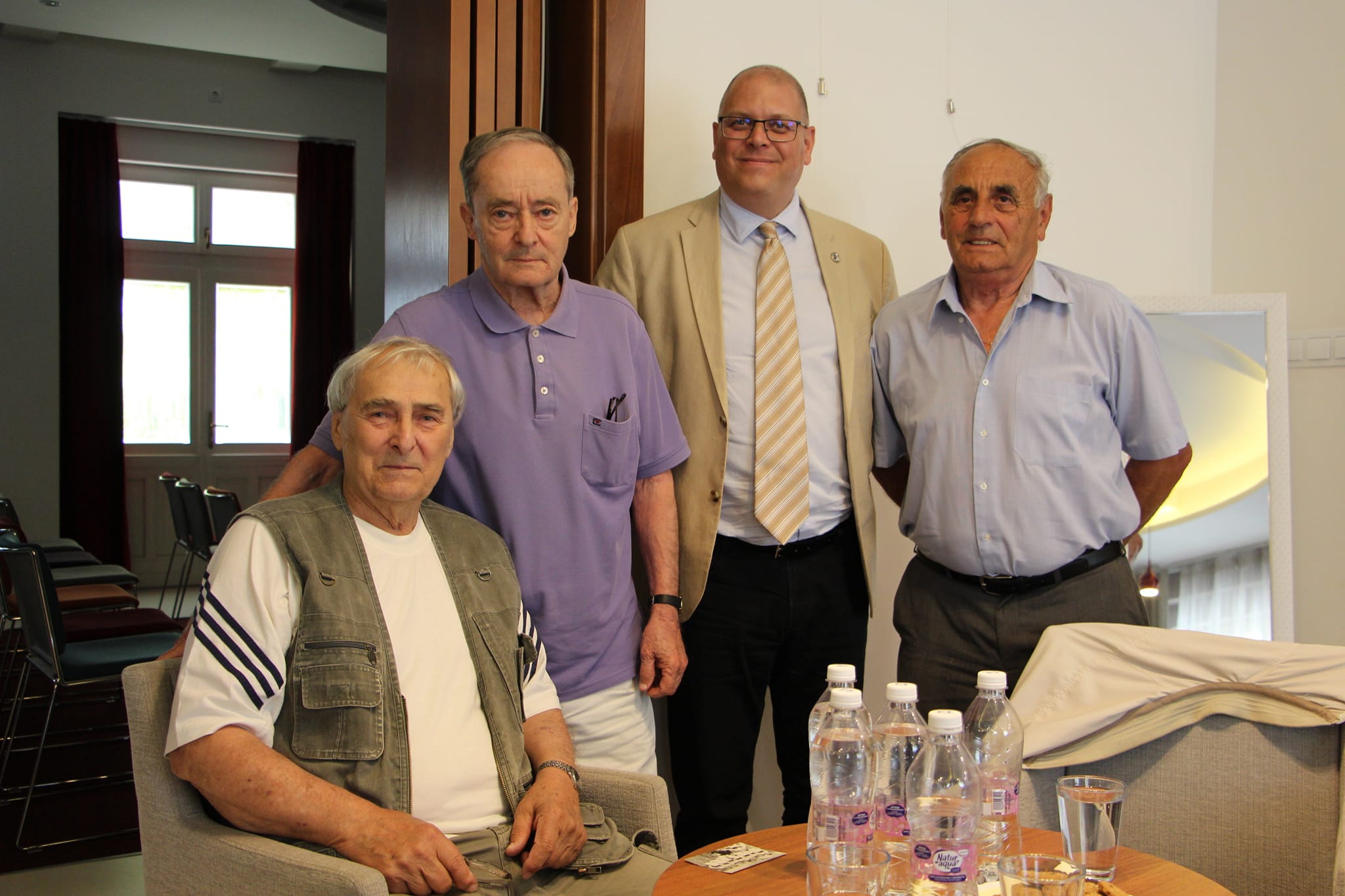 Magyar Zoltán a Magyar- Skót Társaság elnöke – Bartalos József és ifj. Buzánszky Jenő között – külön is köszöntötte a résztvevőket