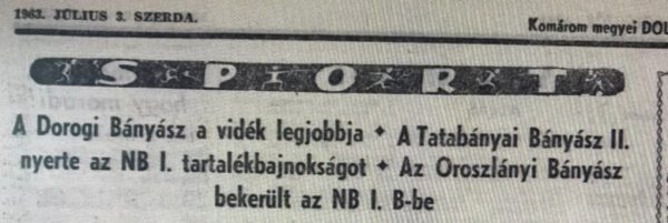 Borítókép: A Dorogi Bányász 1962–1963-as évad Vidék legjobbjának tablója