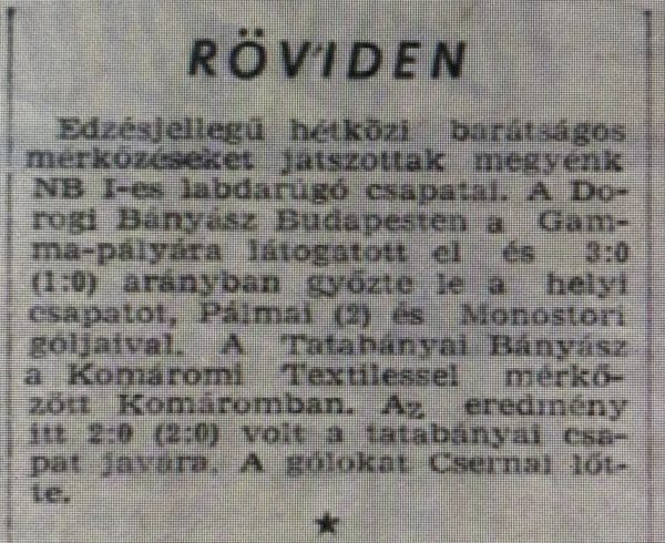 Külön köszönet Regős László – a tatabányai futballmúlt hagyományörzője – részére a fentebb nevezett kép megosztásáért.