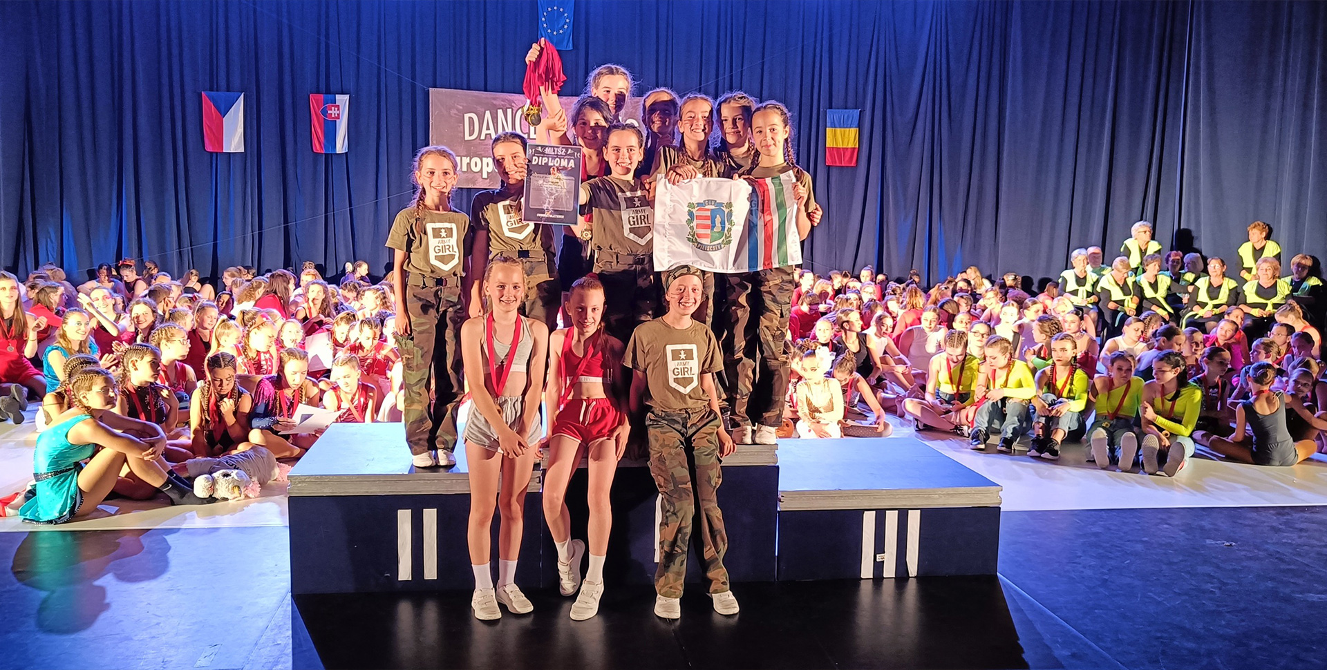 A legfiatalabb trió (Cholnoky Zita, Nagy Léna, Salik Zora) a Rival runners című táncukkal aranyérmet szerzett.