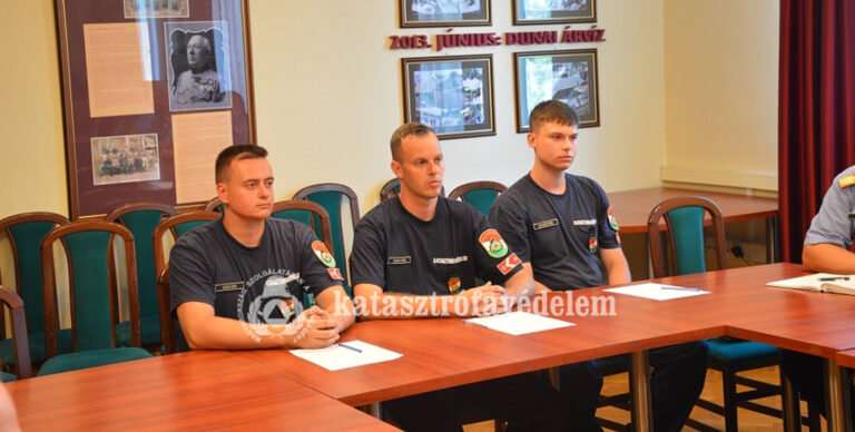 Hétfőn a Komárom-Esztergom Vármegyei Katasztrófavédelmi Igazgatóság vezetői fogadták a három őrmestert. Az igazgatóság tanácstermében a Sári Ákos tűzoltó ezredes, igazgató köszöntötte a felszerelőket, az újoncok bemutatkoztak, majd a szakterületi vezetőktől hasznos tanácsokat és információkat kaptak a vármegyei szervezet működésével kapcsolatban.
